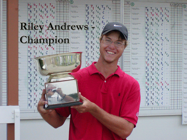 Denver ““ Despite playing in temperatures over 100 degrees at Aurora Hills Golf Course, Riley Andrews of The Links GC kept his cool, firing a final round 65 for a total of 200 (16 under par) to win the CGA Junior Stroke Play Championship. Afterwards, Andrews claimed, “This is (my) biggest win by far since winning the 2004 CHSAA 5A State Championship. I made some changes and worked hard in the off-season ““ taking two steps back ““ and now I feel moving forward again.” Andrews will be a senior this fall at ThunderRidge High School.
